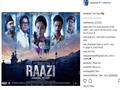 من جانب آخر أعلنت الممثلة الشابة عليا بهات عن طرح فيلمها الجديد Raazi إلى جانب بطل الفيلم "فيكي كوشال"، عبر شاشات السينما الهندية في 11 مايو المُقبل، وذلك عبر حسابها الرسمي بموقع الصور "انستجرام".
