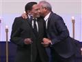 وطلب عادل إمام من أبنائه رامي ومحمد الصعود للمسرح لمصافحة نجيب ساويرس.