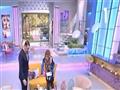 ودخل عليها يحمل "تورتة هدية"، قائلًا: "ألف مبروك زوجتي العزيزة، كان لازم أعمل مفاجأة، يارب البرنامج يكسر الدنيا".
