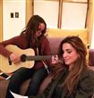- في الصورة الأولى الملكة مسترخية على أنغام أطربتها بعد يوم طويل في العمل، تستمع الى عزف واحدة من ابنتيها على الغيتار.