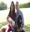 كيت تألقت في ثوب باللون الفوشيا الغامق، مع تسريحة شعر ذات تجعيدة عريضة ، وقد التقط الزوجين الصورة مع طفلهما تحت ظّل شجرة في الحديقة.