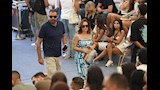 وزينت إطلالتها بمجوهرات ماسية مكونة من خاتم وحلق ونظارة شمس.