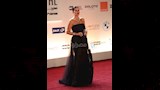 ارتدت الفنانة منة شلبي فستانا أسود لامعا جاء شفافا في منطقة البطن، واكتفت بمكياج ناعم وتسريحة شعر منسدلة.