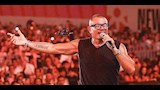 شاهد الحضور فيديو يستعرض مشوار الهضبة الفني تم عرضه قبل صعوده على المسرح.