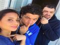 وظهرت نيللي في الصورتين، وهي تلتقط "سيلفي" مع مؤلف العمل، أيمن مدحت، ومدير التصوير أحمد زيتون.