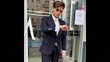 وظهر شادي شامل بإطلالة أنيقة وارتدى بدلة ونظارة شمسية، وكتب:"يادوب ألحق".