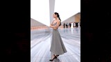 ونسقت مع إطلالتها حقيبة باللون الفضي اللامع، وحذاء أنيق باللون الأسود.