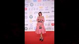 أما الفنانة شيرين اختارت فستانا أسود طويلا بقصة انسيابية، تميز بأنه مزين بالورود عند الصدر والخصر، وظهرت بمكياج قوي مع أحمر شفاه أحمر ناري.