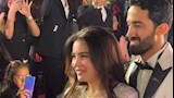 وجاءت البدلة كلاسيكية أنيقة تعكس حضورًا كبيرًا، خاصة في اللقطة التي ظهر فيها ممسكًا بيد زوجته، ما أظهر انسجامًا واضحًا بينهما خلال مرورهم على السجادة الحمراء.