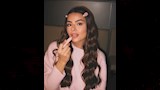 واعتمدت تسريحة شعر مموجة وطويلة؛ باللون الكستنائي اللامع.
