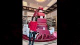 ونسقت مع إطلالتها حذاء طويل مصنوعا من خامة الجلد.