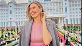 ولإكمال هذه الإطلالة، اعتمدت مكياجا ناعما بألوان البينك الهادئة التي تتناسب مع لون بشرتها وجمال ملامحها الطبيعية والجذابة.