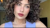 واعتمدت تسريحة الشعر المرفوع لأعلى بشكل أنيق، مع بعض الخصلات المنسدلة على جبينها، مما يبرز ملامح وجهها.