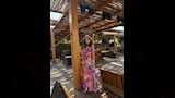 ونسقت مع إطلالتها حذاء وقبعة وحقيبة يد صغيرة باللون البيج.