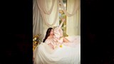 أكملت هيفاء إطلالتها بتاج ذهبي كبير مزين بزهور بيضاء، وارتدت "طرحة" زفاف قصيرة من التول الشفاف.