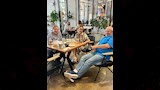 ونسقت مع إطلالتها حقيبة يد باللون الأسود ونظارة شمسية باللون البني.