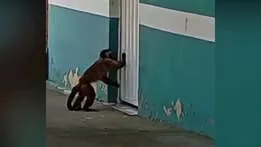 وانتشرت مقاطع فيديو تظهر القرد وهو يحمل سكينا ويتحرك بها، قبل أن يدخل منازل السكان ويعبث بمحتوياتها.