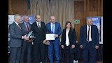 كما قام المهندس مبروك عامر بالإنابة عن المهندس طارق النبراوي نقيب المهندسين بتسليم درع النقابة للمهندس إبراهيم فتحي تقديراً وتكريما لشركة مصر للطيران للصيانة والأعمال الفنية الصرح الهندسي العريق ودورها الريادي في المنطقة.
