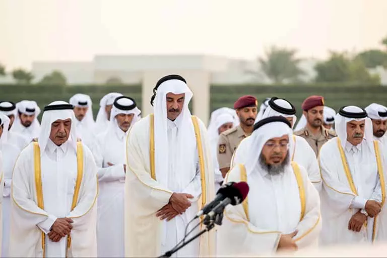 كذلك، شارك وزير الخارجية محمد بن عبد الرحمن بن جاسم آل ثاني، وعدد من الوزراء وكبار المسؤولين، في أداء الصلاة.