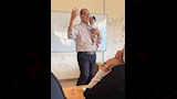 عميد تجارة كفر الشيخ يحمل طفلة طالبة أثناء محاضرة