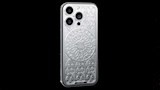 يحمل الهاتف شعار تفاحة مصنوع من الذهب الأبيض عيار 18 قيراطا، مزودا بـ 56 قطعة ألماس بأحجام مختلفة: 7 ألماسات بحجم 1.5 مم، 2 بحجم 2 مم، و49 قطعة بحجم 1.25 مم، ما يضيف لمسة فاخرة ويجعل كل نسخة فريدة من نوعها.