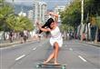 فيديو لفتاة يرصد ما تتمتع به من مواهب في التزحلق على اللوح الخشبي