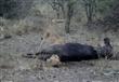 رأس شبل تنحشر في "مؤخرة" بقرة مقتولة والأسود تنقذه