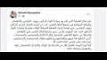 واختتم "كما أيضا أتوجه بالشكر لكل من قام بالدعاء للوالد والاتصال للاطمئنان عليه والاهتمام بمتابعة حالته".