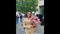 وظهرت ياسمين بالصور وهي تحمل بوكيه ورد من كواليس تصوير الإعلان الخاص بأحد شركات العقارات، بجانب أحمد عز.