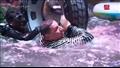 ولم يتمكن "زيدان" من السباحة ليقوم أحد أفراد البرنامج من الغواصين بإنقاذه من الغرق.