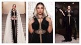 وارتدت درة قفطانًا تونسيًا أسود اللون، مزينًا بتطريزات ذهبية مستوحاة من الطراز التقليدي، مما أضفى على إطلالتها لمسة أنيقة.