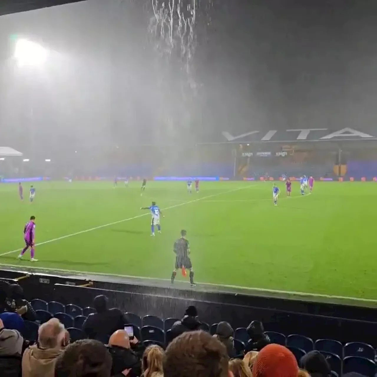 تعرض حكم الراية بمباراة ستوكبورت وويجان في منافسات بطولة "فيرتو تروفي" أي "كأس الدوري الإنجليزي" لموقف طريف خلال إدارته للقاء، بعدما أغرقته شلالات مياه متسربة من سقف أحد المدرجات.