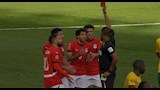 وبعد أقل من دقيقتين من تسجيل المنتخب الوطني الهدف الأول، تعرض الظهير الأيمن للفراعنة محمد هاني للطرد، بعدما أشهر الحكم البطاقة الصفراء الثانية له، ثم منحه البطاقة الحمراء، بعد ارتكابه مخالفة ضد لاعب جنوب أفريقيا، ليكمل المنتخب الوطني اللقاء بـ10 لاعبين.