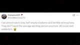 وتوقع أحد المشجعين: "أكاد أرى ذلك الآن، ملاعب شبه فارغة وأجواء كارثية".