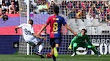 فيرمين لوبيز يسجل هدف برشلونة الخامس في الدقيقة 90+5، لكن يُلغى بسبب لمسة يد على اللاعب