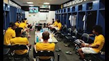 وقرر بدلاء الفريق الكروي الألماني متابعة الشوط الأول من داخل غرفة الملابس هرباً من أشعة الشمس الحارقة على ملعب تي كيو آل ستاديوم.