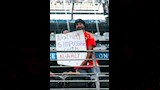 و طالب مشجع آخر بالحصول علي قميص الحارس محمد الشناوي حيث رفع لافتة كتب عليها:" عاوز التيشرت بتاعك يا شناوي".