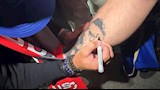 وحظي المهاجم باستقبال الأبطال من قبل الجماهير، حتى أنه قام بالتوقيع على ساق أحد المشجعين الذي كان يحمل وشمًا له.
