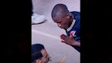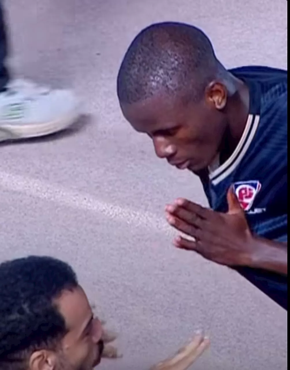 واسى المحترف الغاني أمادو لاعب بتروجيت، أحد مشجعي النادي الأهلي، من ذوي الاحتياجات الخاصة، قبل ثوان من نهاية اللقاء الذي جمع بينهما مساء أمس.