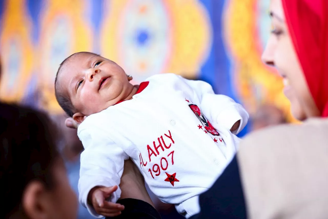 ونشر الحساب الرسمي للأهلي على موقع التواصل الاجتماعي "فيسبوك"، صورة لمولودة ترتدي ثوبًا عليه شعار النادي الأهلي.