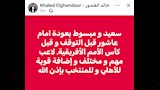 وكتب الغندور عبر حسابه على موقع التواصل الاجتماعي "فيسبوك ":"سعيد ومبسوط بعودة إمام عاشور قبل التوقف وقبل كأس الأمم الأفريقية".